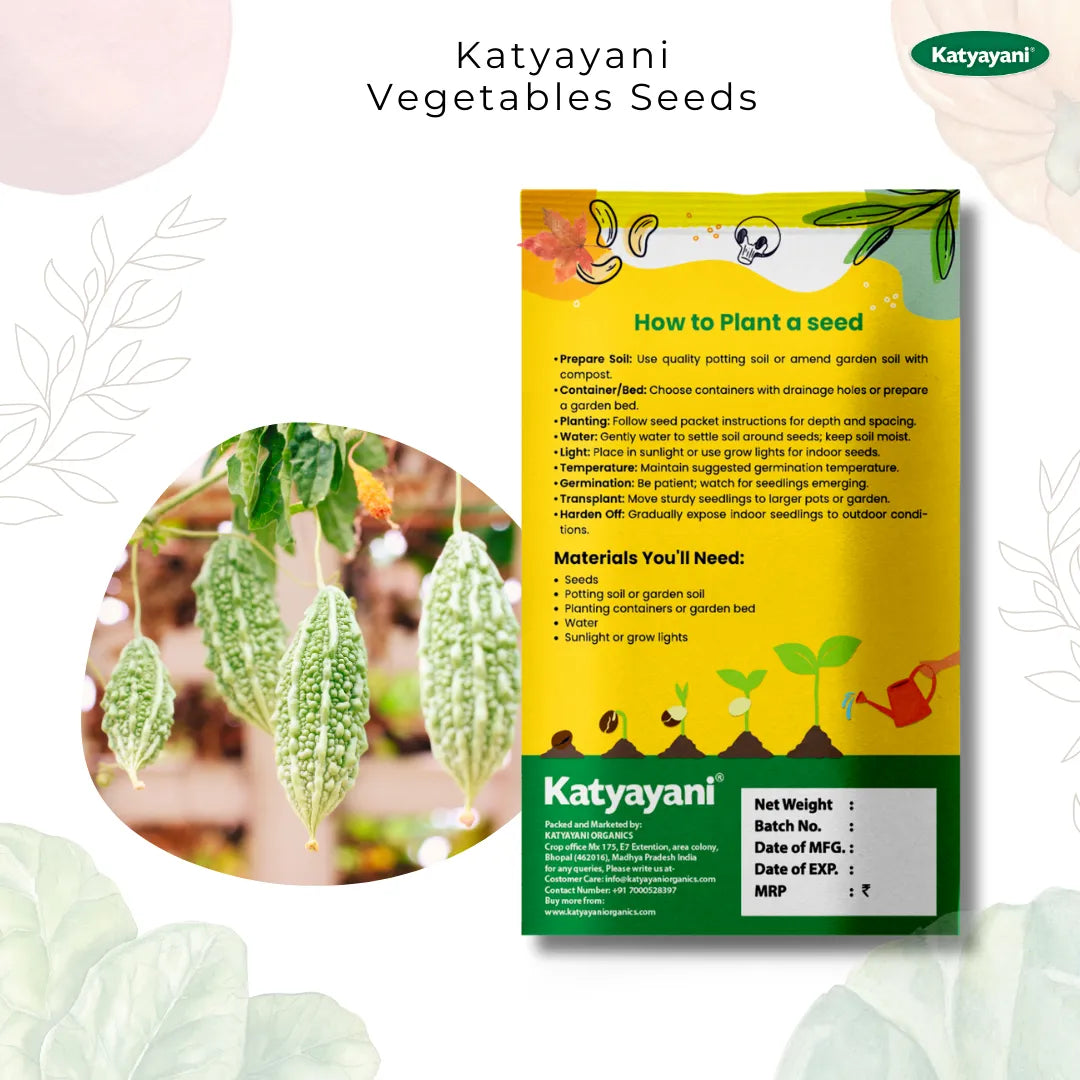 About the Seeds: Our Bitter Gourd seeds promise a bountiful harvest of this nutrient-rich vegetable. When you choose Katyayani's Bitter Gourd Seeds, you're not just planting a vegetable; you're sowing health and wellness in your garden.
