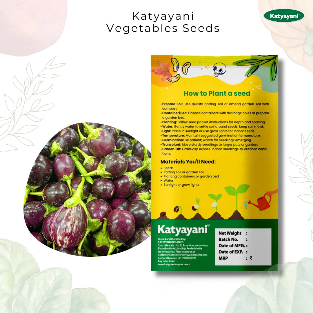 About the Seeds: Our Brinjal seeds promise a bountiful harvest of this nutritious vegetable. When you choose Katyayani's Brinjal Seeds, you're opting for quality and a vegetable that's cherished in kitchens worldwide.