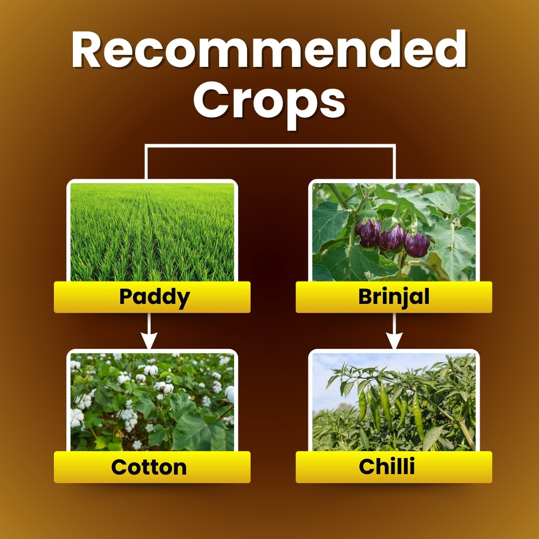 Applicable Crops: Katyayani Spino45 is effective on a variety of crops, including Cotton, Chillies, Red Gram, Brinjal, and Grapes, among others.